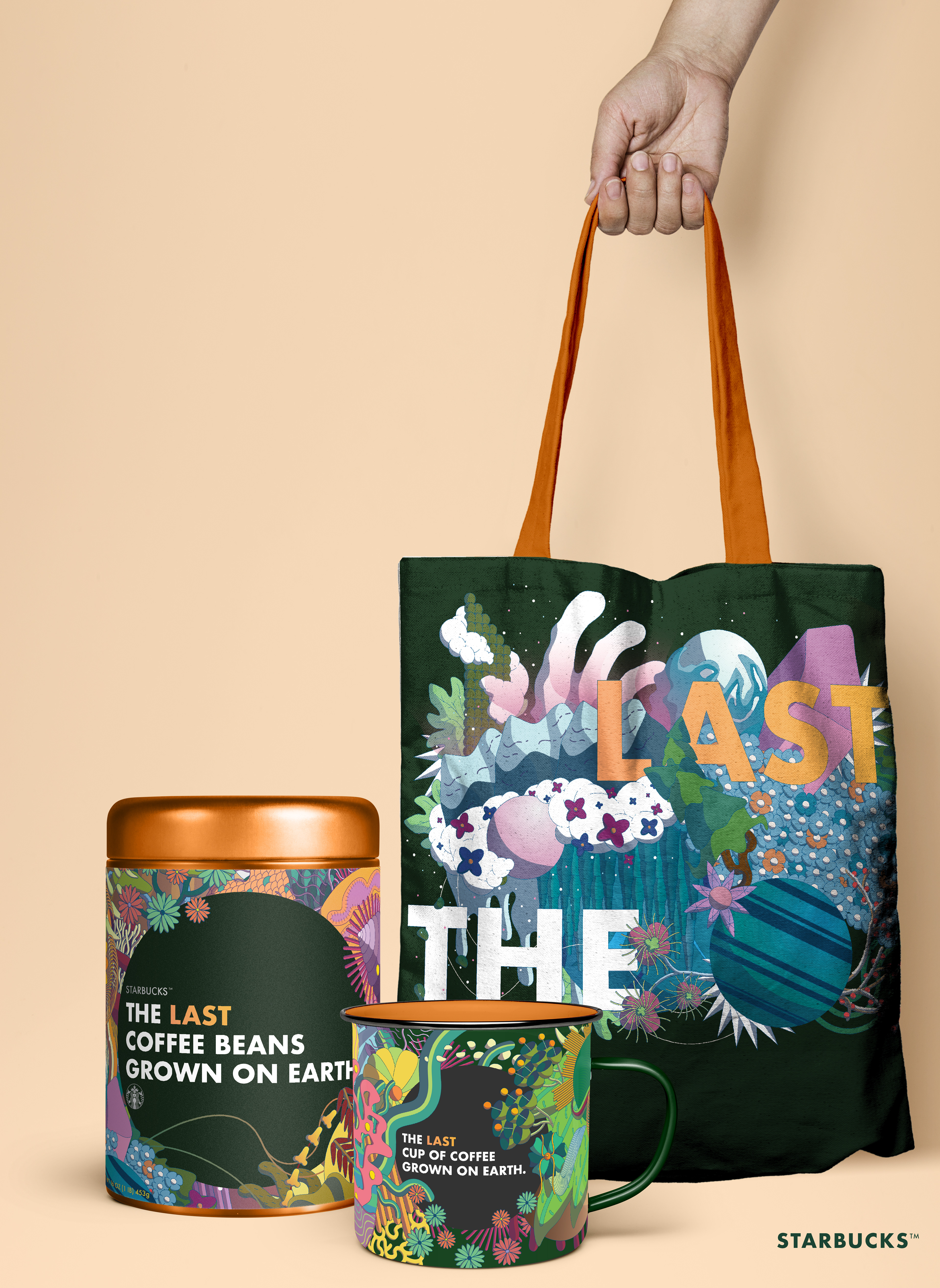 In the future, when earth is completely destroyed and we are living on Mars, Starbucks will capitalize on the precious earthly coffee that was saved. Below is the Starbucks merchandise for its "Last Of Earth" campaign.